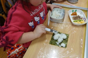 今日のお昼ご飯は、カモミール・ベルガモット・ローズマリーさんは自分の恵方巻づくりをしました! 海苔の上にご飯を敷いて・・・ 好きな具材をのせて・・・ 巻き巻きして・・・ 「できた!」 「いただきま~す」 南南東の方を向き […]