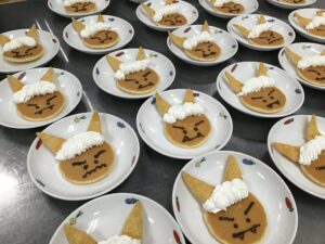 今日のおやつは鬼のパンケーキです これを食べて、鬼をやっつけるぞ~~!!