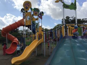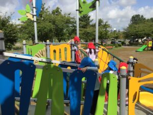 公園に着いてから、遊具で遊んだり、お弁当を食べました。