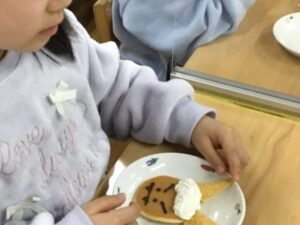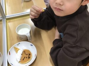 今日のおやつは鬼のパンケーキです